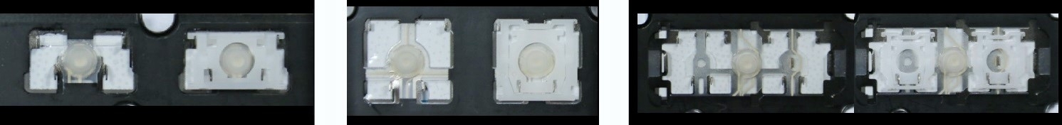 - En la mayoría de los teclados que parecen idénticos por fuera se han utilizado diferentes tipos de clips de sujeción bajo las teclas.