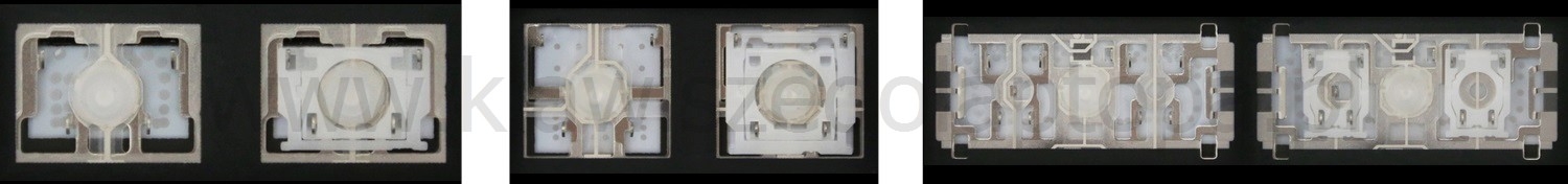 - En la mayoría de los teclados que parecen idénticos por fuera se han utilizado diferentes tipos de clips de sujeción bajo las teclas.