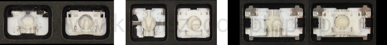 - En la mayoría de los teclados que parecen idénticos por fuera se han utilizado diferentes tipos de clips de sujeción bajo las teclas.