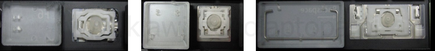 - En la mayoría de los teclados que parecen idénticos por fuera se han utilizado diferentes tipos de clips de sujeción bajo las teclas.