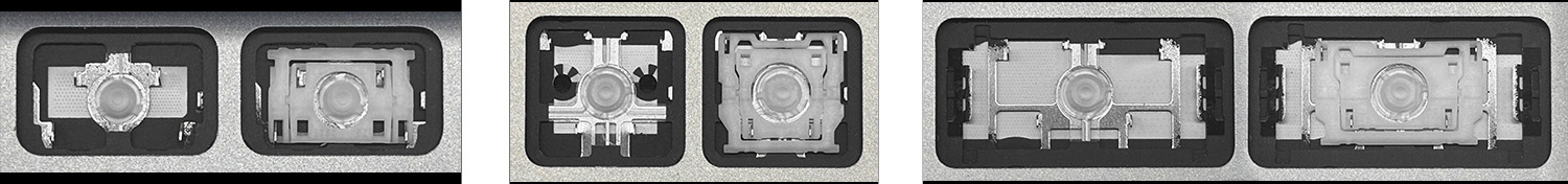 - En la mayoría de los teclados que parecen idénticos por fuera se han utilizado diferentes tipos de clips de sujeción bajo las teclas.