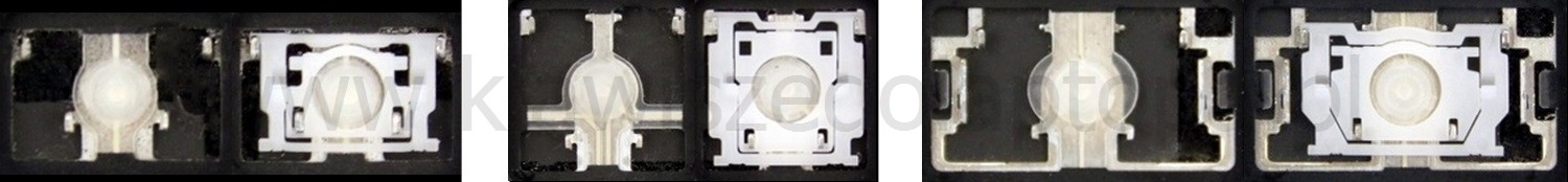 - En la mayoría de los teclados que parecen idénticos por fuera se han utilizado diferentes tipos de clips de sujeción bajo las teclas.
