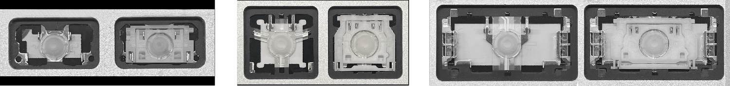 - En la mayoría de los teclados que parecen idénticos por fuera se han utilizado diferentes tipos de clips de sujeción bajo las teclas.