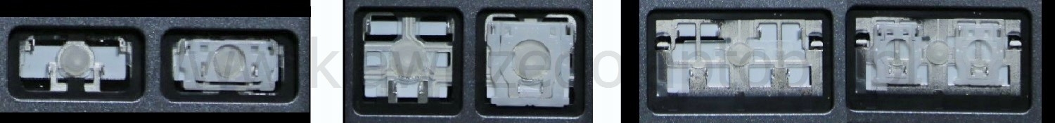 - En la mayoría de los teclados que parecen idénticos por fuera se han utilizado diferentes tipos de clips de sujeción bajo las teclas.