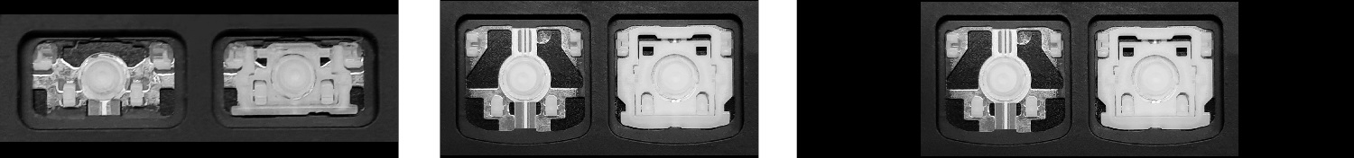 - En la mayoría de los teclados que parecen idénticos por fuera se han utilizado diferentes tipos de clips de sujeción bajo las teclas.