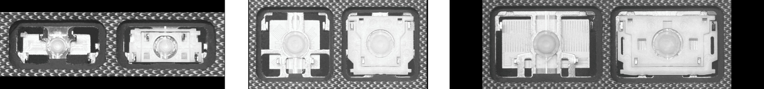 - En la mayoría de los teclados que parecen idénticos por fuera se han utilizado diferentes tipos de clips de sujeción bajo las teclas.