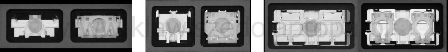 - En la mayoría de los teclados que parecen idénticos por fuera se han utilizado diferentes tipos de clips de sujeción bajo las teclas.