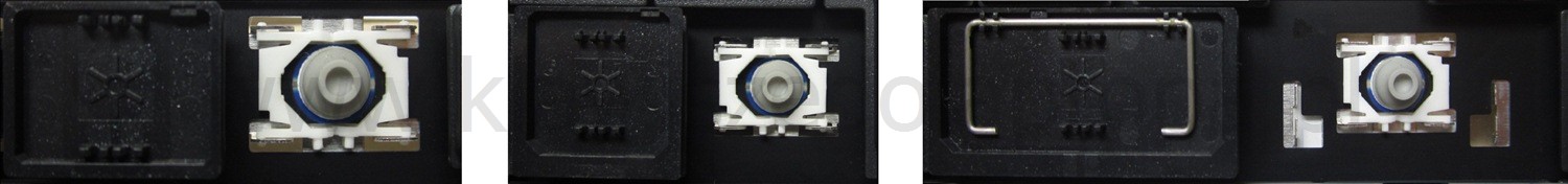 - En la mayoría de los teclados que parecen idénticos por fuera se han utilizado diferentes tipos de clips de sujeción bajo las teclas.